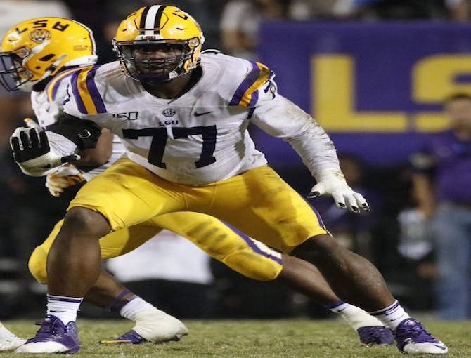 The 6-4 310 lb John Simpson is versatile enough to play left guard or right guard. The Las Vegas Raiders have Ritchie Incognito at left guard and Gabe Jackson at right guard. Simpson is good enough to start, but can start out as a swing guard after doing well in Mobile during the 2020 Senior Bowl.