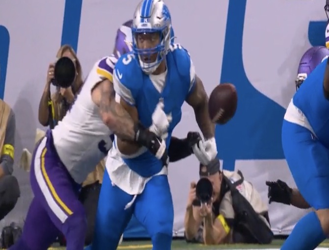 Jared Goff threw a 37 yard touchdown pass to Jameson Williams. Minnesota led 27-24.