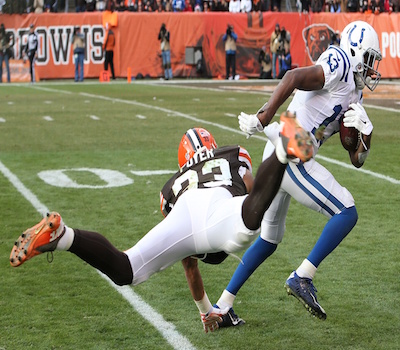 Lucks first big play on the drive happened when he fired a 27-yard completion to Donte Moncrief on 3rd and 7. Moncrief got by rookie cornerback Justin Gilbert who was drafted 8th overall. Best part is Moncrief was not even drafted in the first round. On the next play Browns cornerback Buster Skrine was called for a defensive pass interference penalty. The penalty took the Colts from their own 40 yard line to the Browns 25 yard line. Joe Haden blew his assignment in coverage when T.Y. Hilton caught the game winning touchdown.