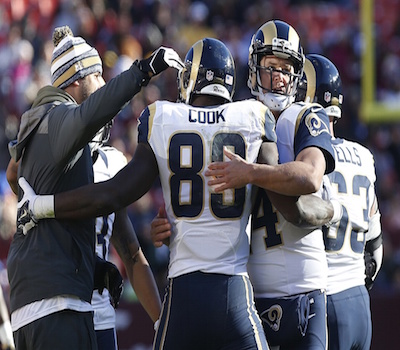 Cook caught a second receiving touchdown. Rams won 24 to 0.