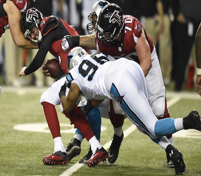 Carolina scored 10 more points in the third quarter. Defensive tackle Star Lotulelei had 7 solo tackles and 2 sacks in the Panthers 34 to 3 victory over the Atlanta Falcons.
