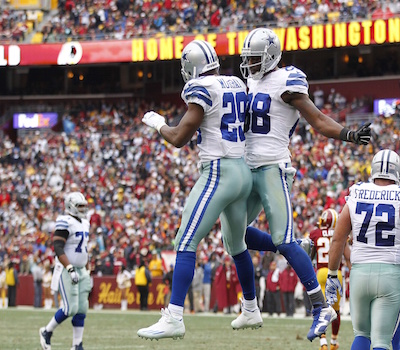 DeMarco Murray and Dez Bryant had huge games in the Cowboys revenge victory at FedEex Field. Murray had 100 rushing yards which gave him 1,845 besting Emmitt Smith's 1,773 receiving yards. Dez Bryant surpassed Terrell Owens for most receiving touchdowns in a season with 16 receiving touchdowns besting T.O.'s 15 touchdowns. Cowboys won 44 to 13.