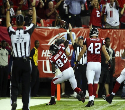 After the turnover, Ryan handed the ball off to David Hester, who ran it 20 yards in for another Falcons touchdown to start the second quarter. The Falcons now lead 28-0 and now have a rushing, two receiving and a defensive touchdown in this game.