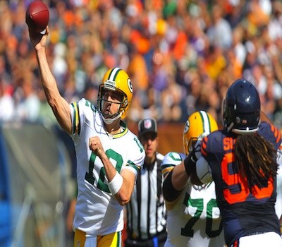 That completion gave Cutler his 14th completion on 20 pass attempts. Cutler also threw 2 touchdowns and no picks. Aaron Rodgers 13 for 17, 2 touchdowns, and no picks. Rodgers 185 passing yards bested Cutler 164 in the first half.