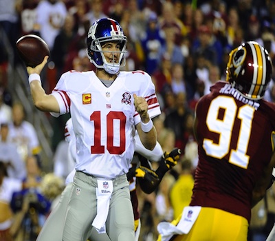 Without DeAngelo Hall, Eli Manning looked better. Washington also moved Ryan Kerrigan to 3-4 right outside linebacker and Brian Orakpo to the 3-4 left outside linebacker role. You saw both rushers rotate spots at right outside and left outside linebacker on the first series.