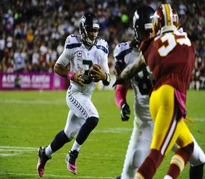 A 41-yard touchdown pass to Percy Harvin being brought back due to a penalty, a challenge against Wilson for allegedly throwing the ball past the line of scrimmage and multiple penalties, couldn't stop The Seahawks from scoring, as Wilson connects with Lynch for a nine yard touchdown in the fourth quarter. The drive was highlighted by Wilsons scramble play, where he avoided two Redskins defenders, danced on the line of scrimmage and still brought himself back in the pocket to connect on a 12 yard pass to Luke Willson. The punter, Jon Ryan even did his part to keep the drive alive with a five yard run to the left for the first down.