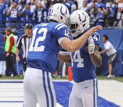Luck had another monster performance as usual. Wide receiver T.Y. Hilton had 7 receptions for 107 receiving yards, tight end Coby Fleener 4 receptions for 64 receiving yards, running back Trent Richardson had 4 receptions for 41 receiving yards, tight end Dwayne Allen had 3 receptions for 52 receiving yards along with a receiving touchdown, running back Ahmad Bradshaw had 3 receptions, 36 receiving yards, and 1 receiving touchdowns. Reggie Wayne had 4 receptions for 20 receiving yards.