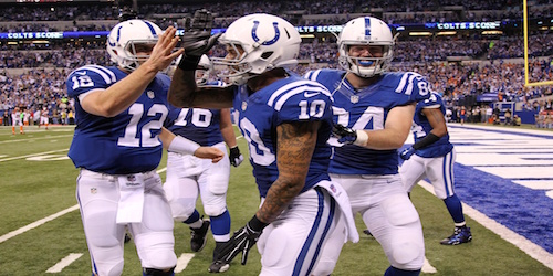 Andrew Luck went 31 for 44 with 376 passing yards, 1 touchdown and no interceptions. Hilton had 103 receiving yards despite some dropped passes early in the game. Herron led the Colts with 10 receptions for 85 receiving yards. Hakeem Nicks had 3 receptions for 59 receiving yards and rookie Donte Moncrief had 3 receptions for 54 receiving yards including a 36-yard touchdown reception from Andrew Luck in the third quarter.