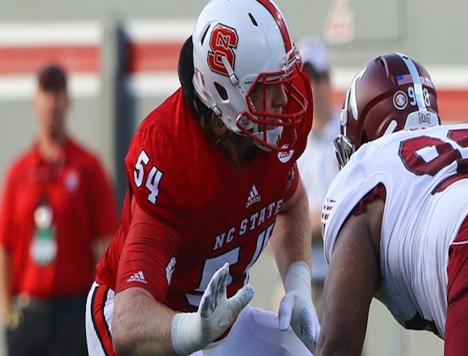 North Carolina State offensive lineman Joe Thuney has the versatility to play left tackle, left guard, center, right guard, or right tackle with his versatility. Thuney is listed as a third string right tackle in New England.