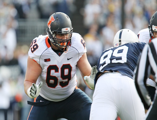 Ted Karras was a right guard at Illinois. The Patriots have him as a third string left guard.
