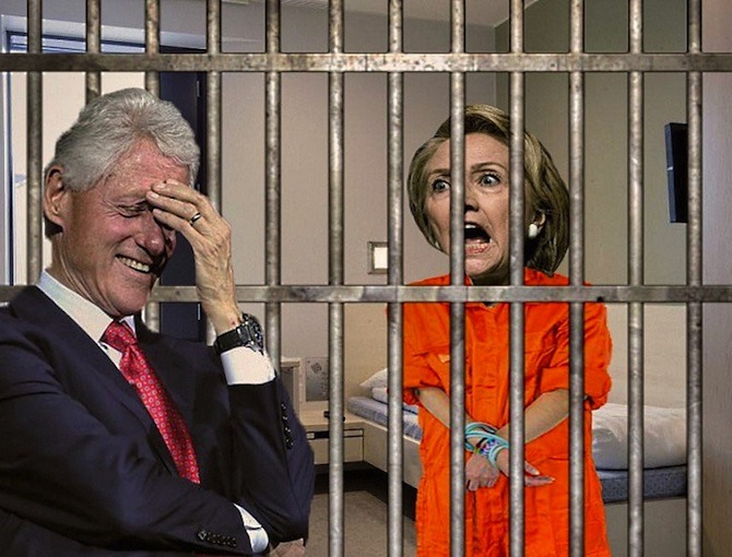 We will now to a jail cell where Hillary Clinton was being held. Bill Clinton stood out in front of Hillary Clinton.