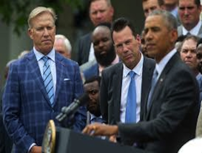 The entire Broncos team was with Obama. Elway, Kubiak, Manning, and the entire team except for backup Brock Osweiler. We would now return to NFL Big Brother to hear Julie Chen and a few NFL teams discuss their 2016 Strategies.