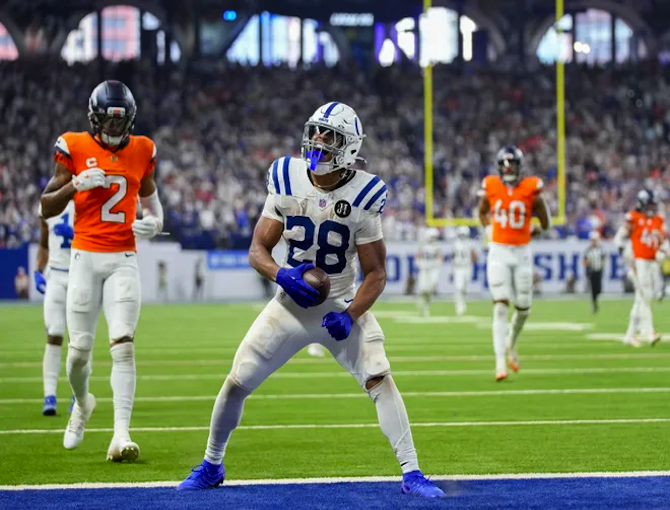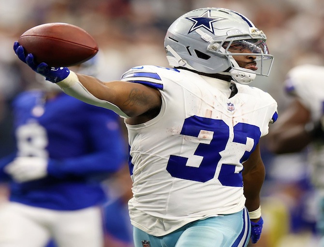 Dallas Cowboys running back Javonte Williams got a 30 yard rushing touchdown. Dallas led 17-13.